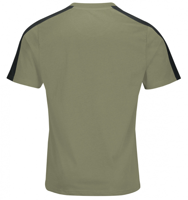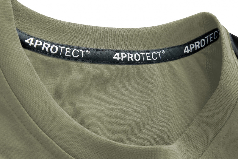 T-Shirt Unisex in olive/schwarz von 4PROTECT®. T-Shirt mit geprägtem "4PROTECT"-Druck und Streifen, der über die Schultern verläuft. Mit regulärer Passform, Rundhalsausschnitt und kurzen Ärmeln.