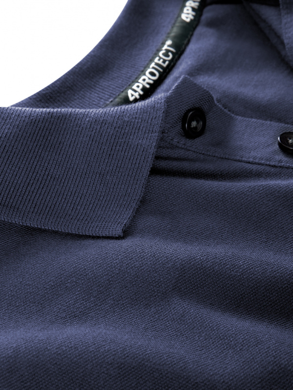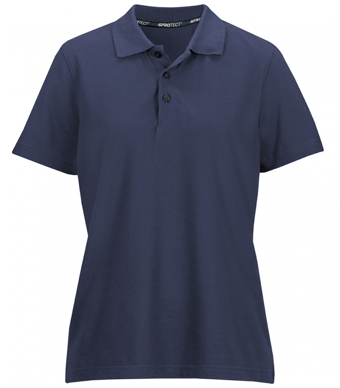Dunkelblaues Damen Polo-Shirt in navy von 4PROTECT® Workwear aus klassischem Piqué mit regulärer Passform, Kragen, Knopfleiste und Kurzarm. Hergestellt aus Baumwolle gemischt mit Polyester für Form- und Farbstabilität, auch nach vielen Wäschen. Geeignet für die Industriewäsche nach ISO 15797. Mit Leasingkoller zur einfachen Kennzeichnung.