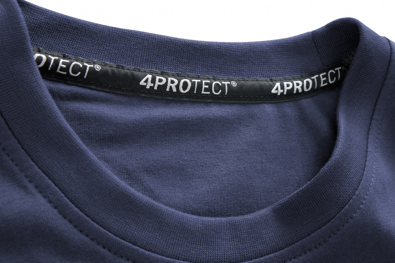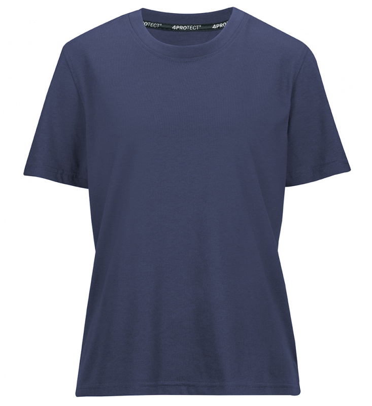 Dunkelblaues Damen T-Shirt in navyblau von 4PROTECT® Workwear. T-Shirt mit regulärer Passform, Rundhalsausschnitt und Kurzarm. Hergestellt aus Baumwolle gemischt mit Polyester für Form- und Farbstabilität, auch nach vielen Wäschen. Geeignet für die Industriewäsche nach ISO 15797. Mit Leasingkoller zur einfachen Kennzeichnung.