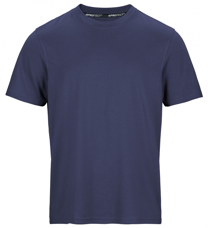 Dunkelblaues Herren T-Shirt in navy von 4PROTECT®.Workwear. T-Shirt mit regulärer Passform, Rundhalsausschnitt und Kurzarm. Hergestellt aus Baumwolle gemischt mit Polyester für Form- und Farbstabilität, auch nach vielen Wäschen. Geeignet für die Industriewäsche nach ISO 15797. Mit Leasingkoller zur einfachen Kennzeichnung.
