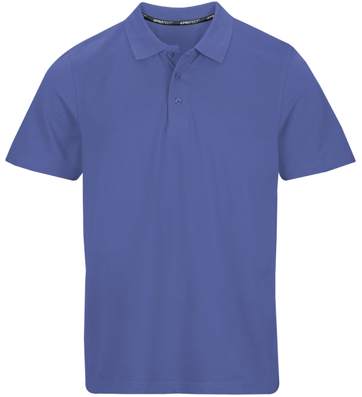 Kornblaues Herren Polo-Shirt in royalblau von 4PROTECT® Workwear aus klassischem Piqué mit regulärer Passform, Kragen, Knopfleiste und Kurzarm. Hergestellt aus Baumwolle gemischt mit Polyester für Form- und Farbstabilität, auch nach vielen Wäschen. Geeignet für die Industriewäsche nach ISO 15797. Mit Leasingkoller zur einfachen Kennzeichnung.