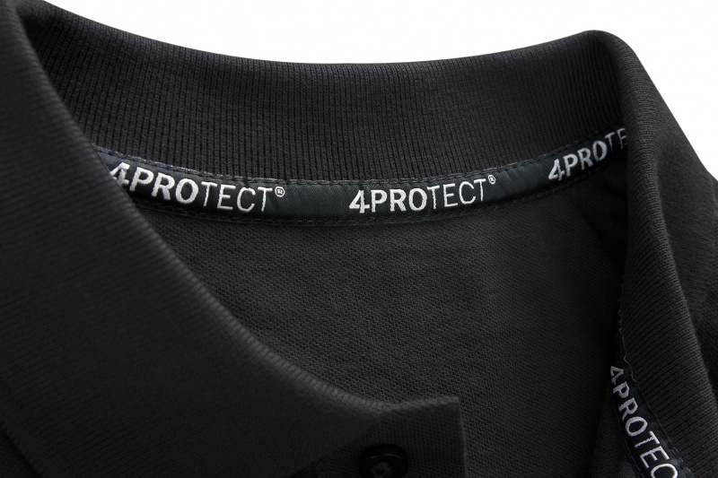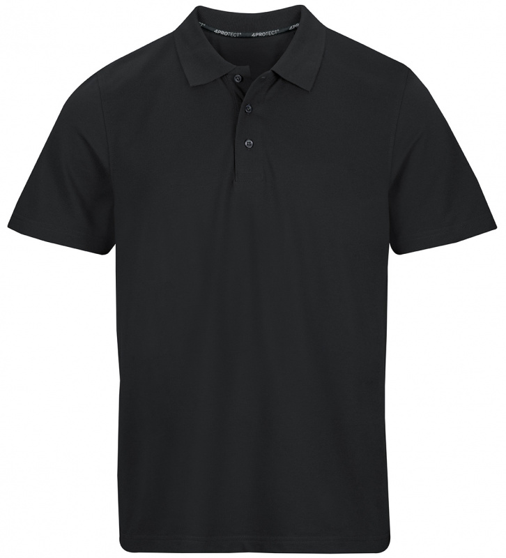 Schwarzes Herren Polo-Shirt in schwarz von 4PROTECT® Workwear aus klassischem Piqué mit regulärer Passform, Kragen, Knopfleiste und Kurzarm. Hergestellt aus Baumwolle gemischt mit Polyester für Form- und Farbstabilität, auch nach vielen Wäschen. Geeignet für die Industriewäsche nach ISO 15797. Mit Leasingkoller zur einfachen Kennzeichnung.