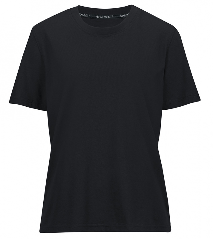 Schwarzes Damen T-Shirt in schwarz von 4PROTECT® Workwear. T-Shirt mit regulärer Passform, Rundhalsausschnitt und Kurzarm. Hergestellt aus Baumwolle gemischt mit Polyester für Form- und Farbstabilität, auch nach vielen Wäschen. Geeignet für die Industriewäsche nach ISO 15797. Mit Leasingkoller zur einfachen Kennzeichnung.