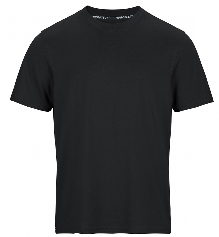 Schwarzes Herren T-Shirt in schwarz von 4PROTECT®.Workwear. T-Shirt mit regulärer Passform, Rundhalsausschnitt und Kurzarm. Hergestellt aus Baumwolle gemischt mit Polyester für Form- und Farbstabilität, auch nach vielen Wäschen. Geeignet für die Industriewäsche nach ISO 15797. Mit Leasingkoller zur einfachen Kennzeichnung.