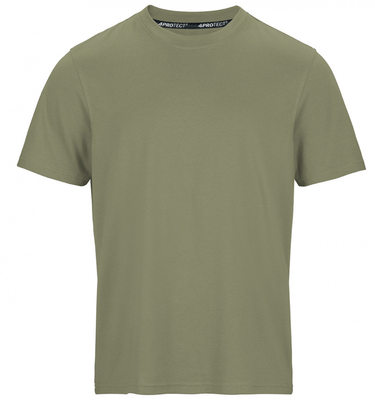 Herren T-Shirt in olive von 4PROTECT®. T-Shirt mit regulärer Passform, Rundhalsausschnitt und Kurzarm. Hergestellt aus Baumwolle gemischt mit Polyester für Form- und Farbstabilität, auch nach vielen Wäschen. Geeignet für die Industriewäsche nach ISO 15797. Mit Leasingkoller zur einfachen Kennzeichnung.