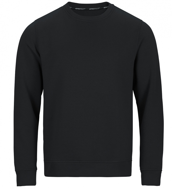 Schwarzes Sweatshirt in schwarz 4PROTECT® mit regulärer Passform, Rundhals und Bündchen an Ärmeln und Saum. Erhöhter Komfort durch weiche, gebürstete Innenseite. Hergestellt aus Baumwolle gemischt mit Polyester für Form- und Farbstabilität, auch nach vielen Wäschen. Geeignet für die Industriewäsche nach ISO 15797. Mit Leasingkoller zur einfachen Kennzeichnung.