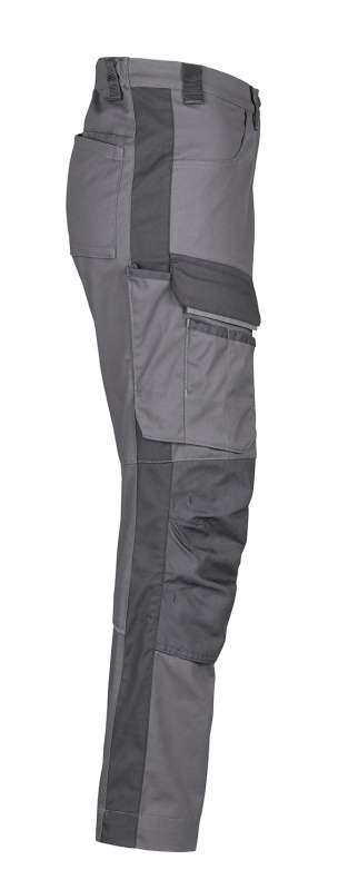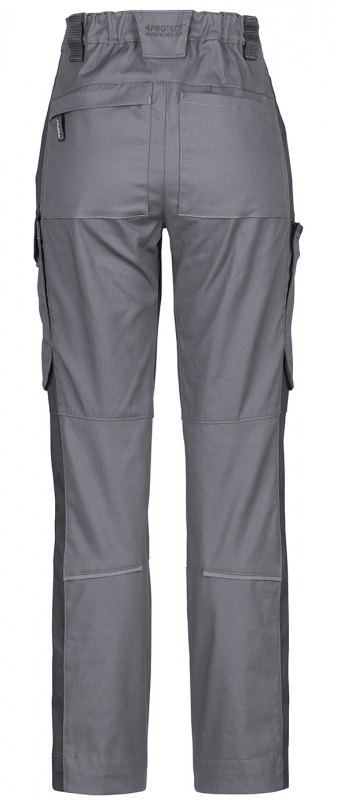 Graue PSA Workwear Damen-Arbeitsbundhose von 4PROTECT® in grau/schwarz. Hervorragender Tragekomfort dank des neuen Stretch-Gewebes europäischen Ursprungs. Ergonomische Schnittform, integrierte Hosenbeinverlängerung bis zu 5 cm. Besätze aus original CORDURA, diverse Taschen. Hochwertige Marken-Accessoires. Damenarbeitshose geeignet für die Industriewäsche nach EN ISO 15797. Kniepolstertasche zertifiziert nach der aktualisierten PSA-Norm EN 14404-3:2024.