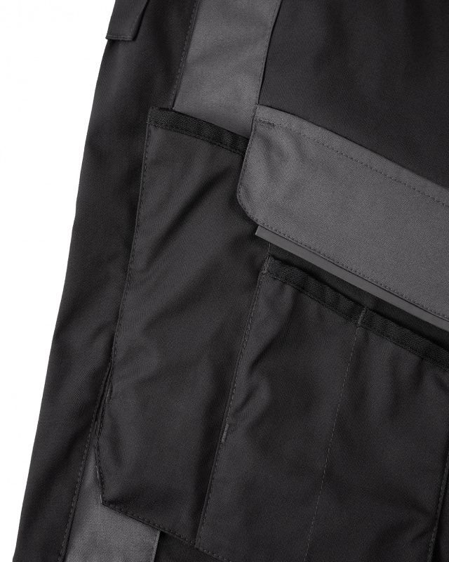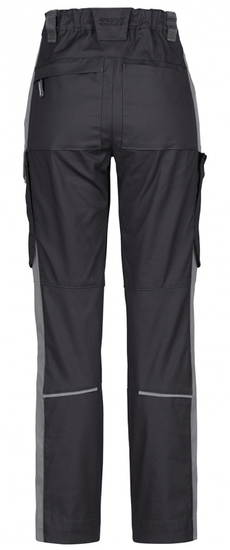 Schwarze PSA Workwear Damen-Arbeitsbundhose von 4PROTECT® in schwarz/grau. Hervorragender Tragekomfort dank des neuen Stretch-Gewebes europäischen Ursprungs. Ergonomische Schnittform, integrierte Hosenbeinverlängerung bis zu 5 cm. Besätze aus original CORDURA, diverse Taschen. Hochwertige Marken-Accessoires. Damenarbeitshose geeignet für die Industriewäsche nach EN ISO 15797. Kniepolstertasche zertifiziert nach der aktualisierten PSA-Norm EN 14404-3:2024.