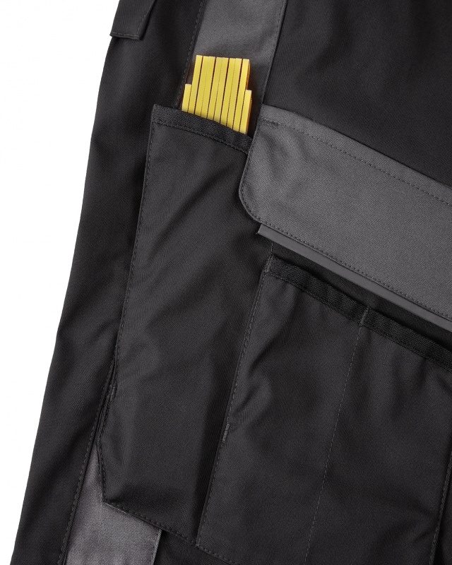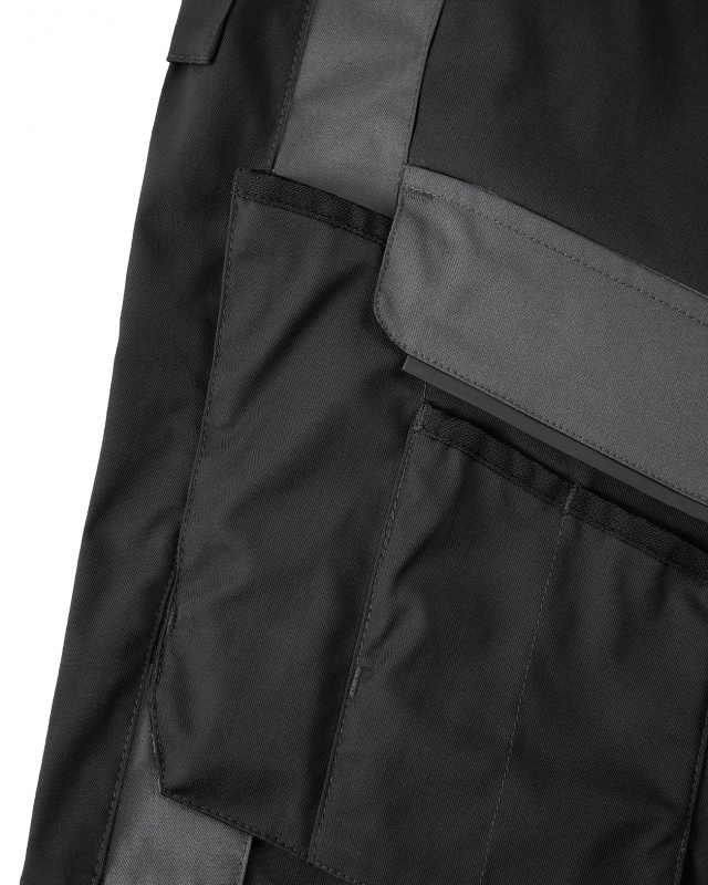 Schwarze Workwear Arbeitsbundhose von 4PROTECT® in schwarz/grau. Hervorragender Tragekomfort dank des neuen Stretch-Gewebes europäischen Ursprungs. Ergonomische Schnittform, integrierte Hosenbeinverlängerung bis zu 5 cm. Besätze aus original CORDURA, diverse Taschen. Hochwertige Marken-Accessoires. Geeignet für die Industriewäsche nach EN ISO 15797. Kniepolstertasche zertifiziert nach der aktualisierten PSA-Norm EN 14404-3:2024.