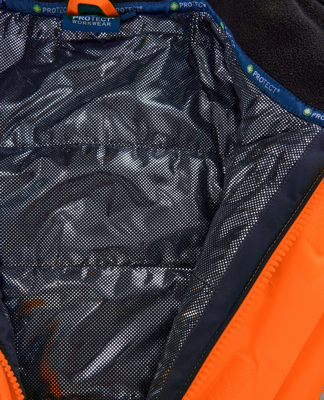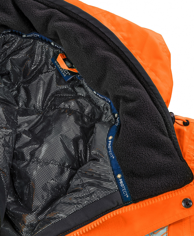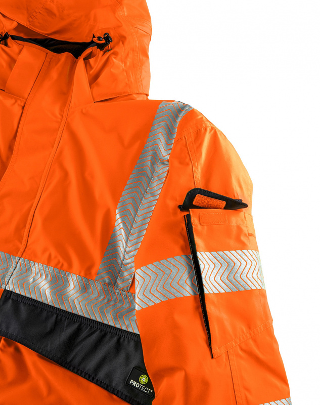 Warnschutz-Wetterschutz-Blouson von 4PROTECT® in leucht-orange. Einsetzbar bei allen Gefahren durch eingeschränkte Sicht schützt der Blouson NEWARK mit seiner wind- und wasserdichten PTFE-Membrane auch vor schlechtem Wetter. Mit dem extrem leichten und atmungsaktiven 4PROTECT®HEATING-Lining in Kombination mit der Fellex® Fast Heat Insulation Wattierung, bleibt die Kälte außerhalb des Blousons. Eine hohe Atmungsaktivität gestattet zudem eine lange Tragedauer. Unterstützt wird dies durch funktionelle Details, wie einem doppelt abgedecktem Front-Reißverschluss sowie einer abzippbaren Sturmkapuze mit diversen Verstell-Optionen. Der dunkel abgesetzte Saum- und Manschettenbereich schützt vor schneller Verschmutzung und die abnehmbare ID-Tasche bietet eine durchdachte Funktionalität. Zudem bietet NEWARK durch einen Service-Reißverschluss die unkomplizierte Möglichkeit der Bedruckung in unterschiedlichen Formaten (z.B. 100 x 50 mm Brust und 150 x 100 mm Rücken), ohne einen abwertenden Einfluss auf die Warnschutz-Klassifizierung.