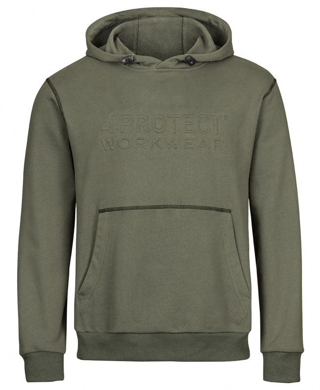 Hoodie in olive von 4PROTECT®.Hergestellt aus trageangenehmer Baumwolle mit stabilisierendem Polyesteranteil aus recycelten Fasern. Aufgeraute Innenseite.