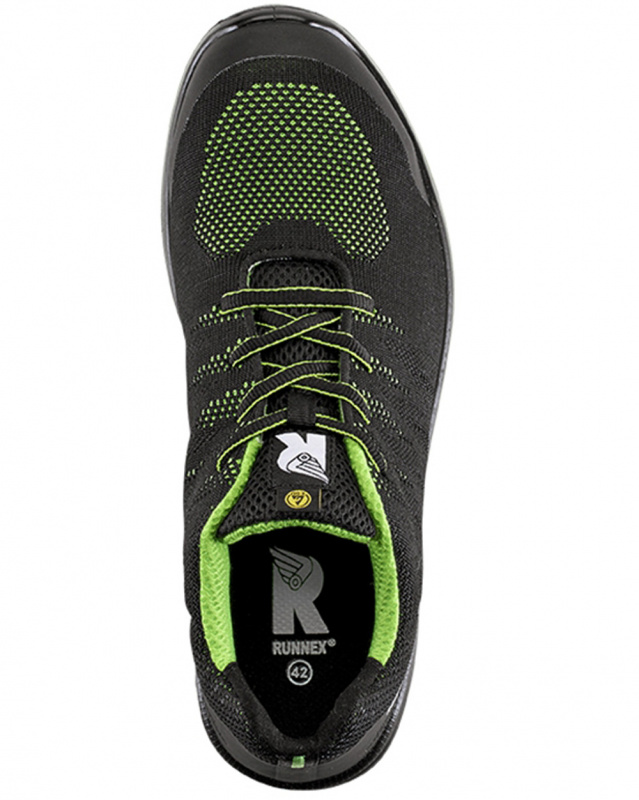 Der RUNNEX® SportStar S1PS-Halbschuh in schwarz/grün mit ESD-Fähigkeit ist sportiv, modisch, und gleichzeitig super bequem. Der perfekte Sicherheitsschuh. Modernes, sportliches Styling, ergänzt um hohen Tragekomfort. Die Zehenschutzkappe aus Stahl und der hochwertig gestrickte Schaft mit TPU-Kappen- und Fersenschutz sorgen für optimalen Schutz des Trägers. Mit der PU-Laufsohle und der RUNNEX® SOFT PU-Zwischensohle ist man auf allen Untergründen gut und sicher unterwegs.