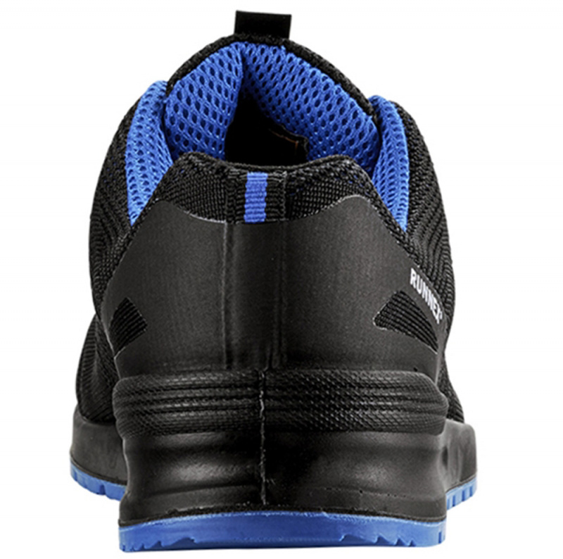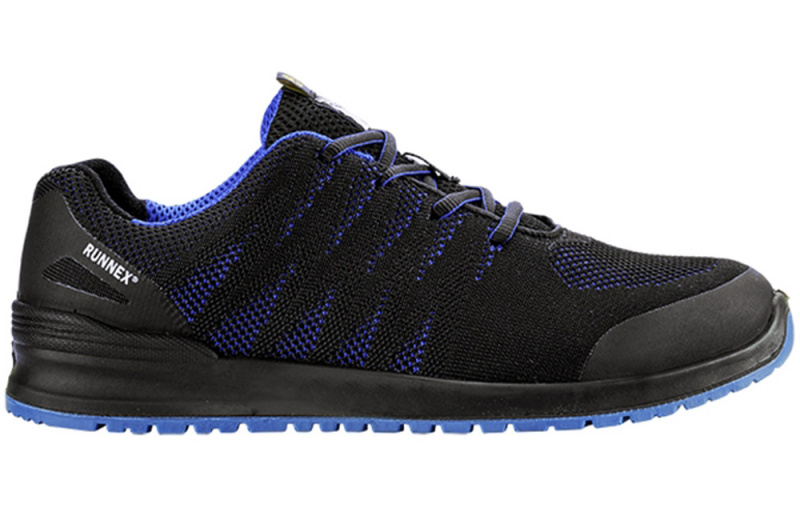 Sicherheitsschuhe S1PS von RUNNEX® SportStar S1PS-Halbschuh in schwarz/blau mit ESD-Fähigkeit ist sportiv, modisch, und gleichzeitig super bequem. Der perfekte Sicherheitsschuh. Modernes, sportliches Styling, ergänzt um hohen Tragekomfort. Die Zehenschutzkappe aus Stahl und der hochwertig gestrickte Schaft mit TPU-Kappen- und Fersenschutz sorgen für optimalen Schutz des Trägers. Mit der PU-Laufsohle und der RUNNEX® SOFT PU-Zwischensohle ist man auf allen Untergründen gut und sicher unterwegs.